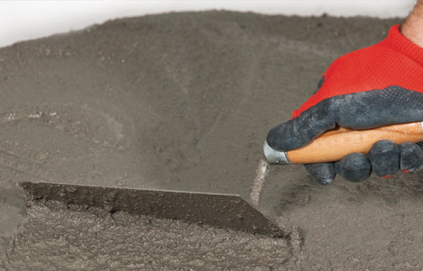 - Tragen Sie die Mischung mit einer Estrichmaschine oder Handkelle auf die trockene Oberfläche auf.